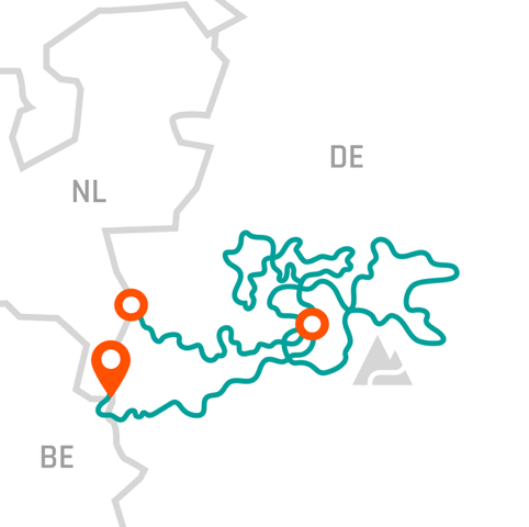 De route start in Vaals of Venlo. Vanuit Vaals rijd je binnendoor naar het hotel nabij Fleckenberg, vanuit Venlo eerst 125 km snelweg tot Bonn, daarna binnendoor.