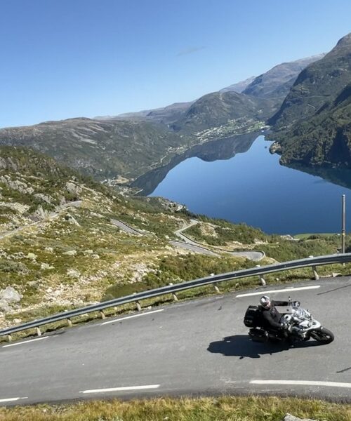 Je hebt onder meer tijd in Bergen, waar je het historische Bryggen kunt ontdekken, en rijdt daarna langs de adembenemende Aurlandsvegen en Gaularsfjellet, twee van de mooiste bergwegen in Noorwegen. De rit over de Ryfylke National Tourist Road is puur motorplezier: kronkelende wegen langs diepe fjorden, imposante bergen en een uitzichten die je even doen vergeten te ademen. De beroemde Trollstigen laat je voor een andere keer, maar met de Sognefjord en de Sognefjellet kun je je motorhart zeker ophalen. En de eenzame wegen die je volgt, brengen je steeds dieper in de waanzinnig mooie natuur van dit spectaculaire land.
